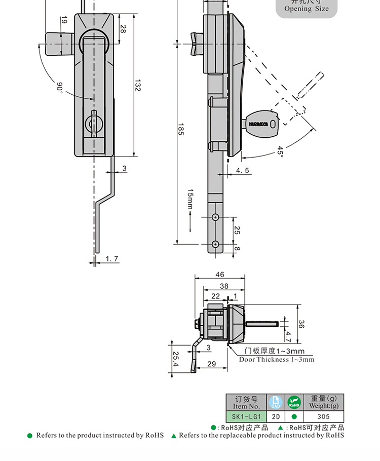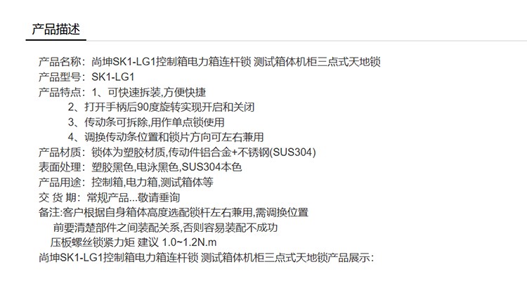 尚坤SK1-LG1控制箱电力箱连杆锁 测试箱体机柜三点式天地锁