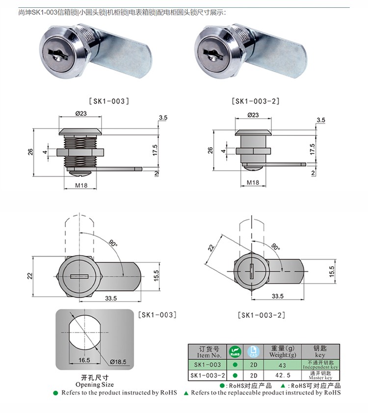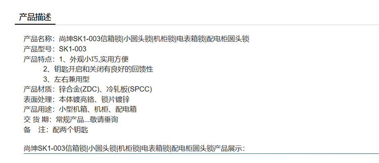 尚坤 SK1-003 信箱锁、小圆头锁、机柜锁、电表箱锁