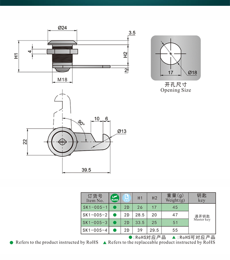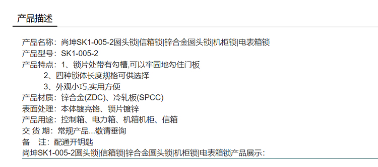 尚坤SK1-005-2圆头锁信箱锁锌合金圆头锁机柜锁电表箱锁