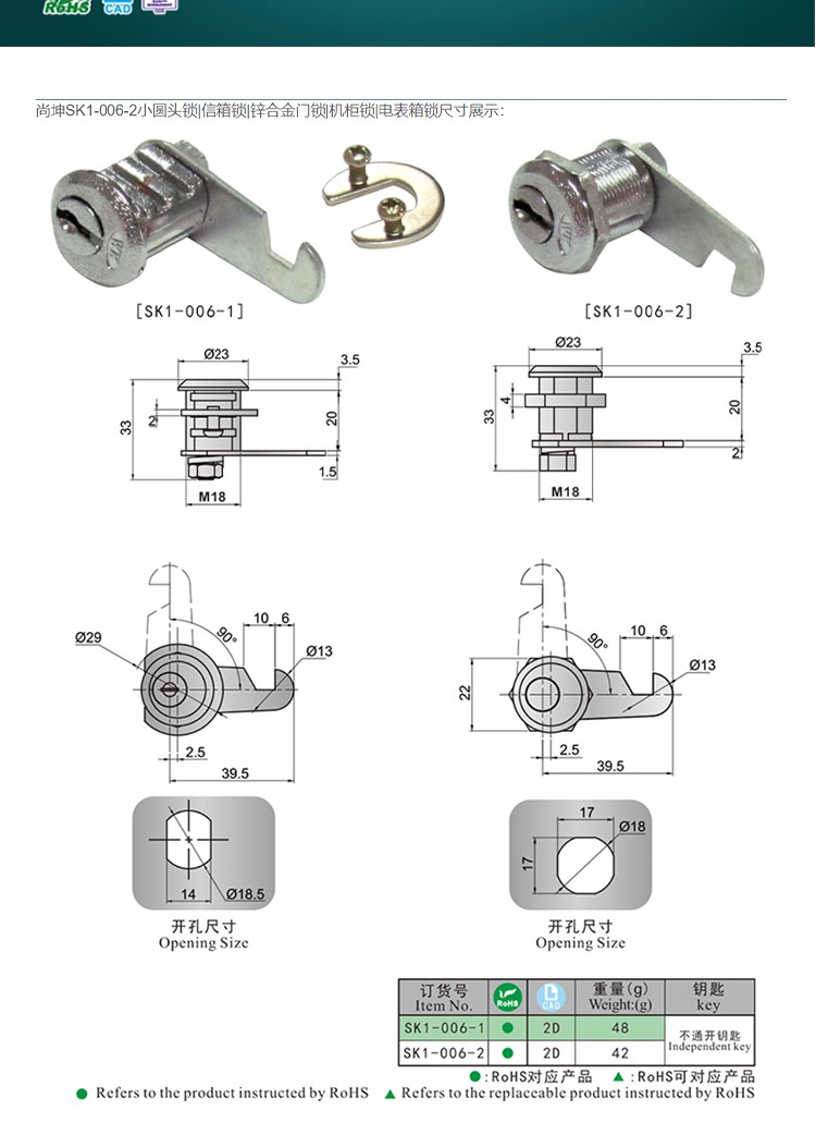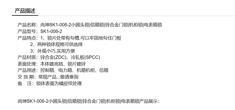 尚坤SK1-006-2小圆头锁信箱锁锌合金门锁机柜锁电表箱锁