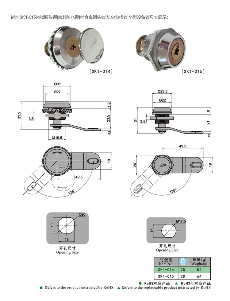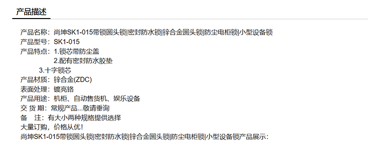 尚坤SK1-015带锁圆头锁密封防水锁锌合金圆头锁防尘电柜锁小型设备锁