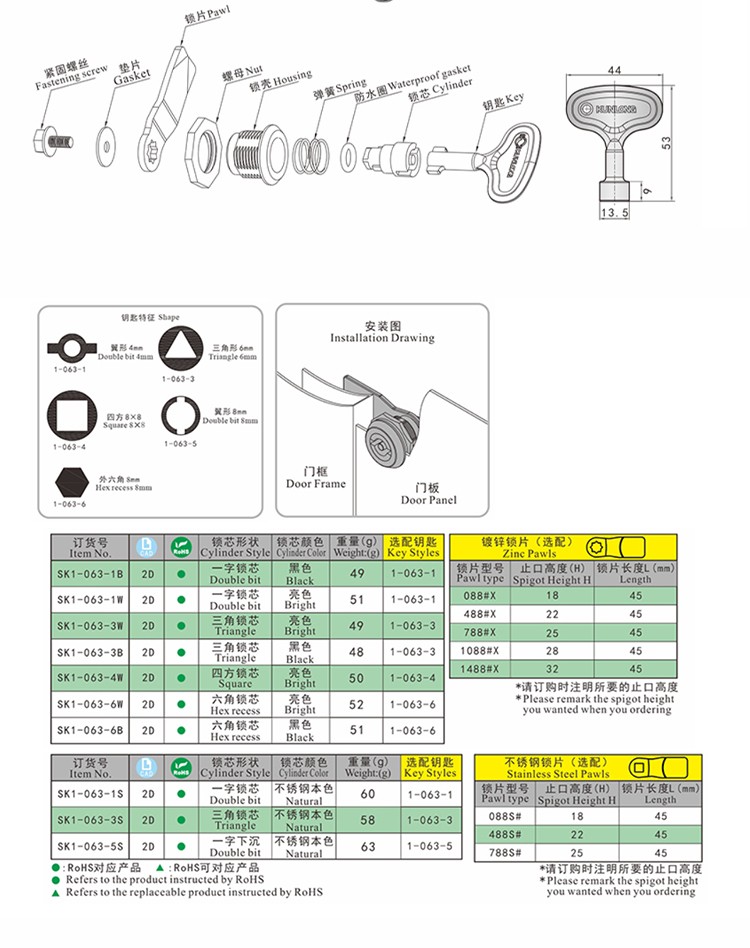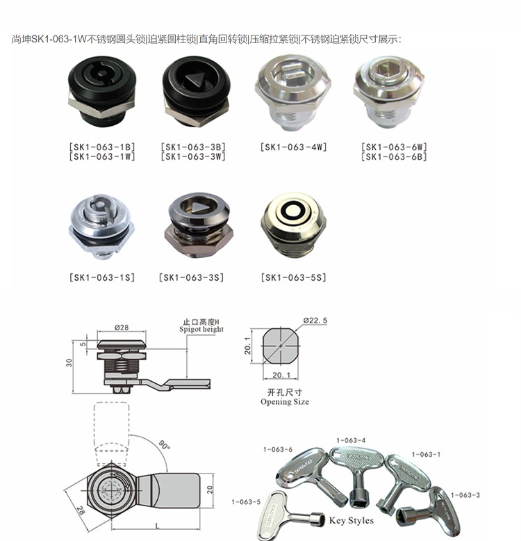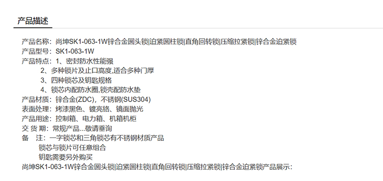 尚坤SK1-063-1W锌合金圆头锁迫紧圆柱锁直角回转锁压缩拉紧锁锌合金迫紧锁