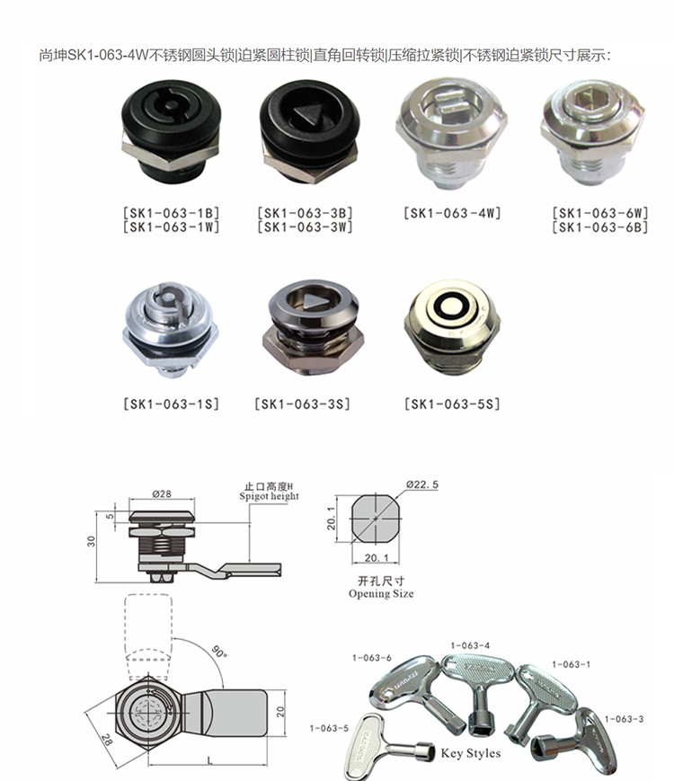 尚坤SK1-063-4W锌合金圆头锁迫紧圆柱锁直角回转锁压缩拉紧锁锌合金迫紧锁