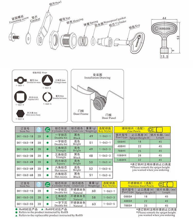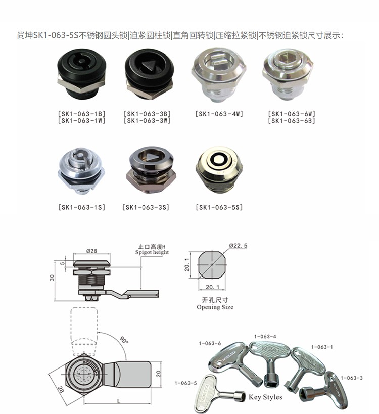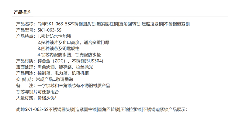 尚坤SK1-063-5S不锈钢圆头锁迫紧圆柱锁直角回转锁压缩拉紧锁不锈钢迫紧锁