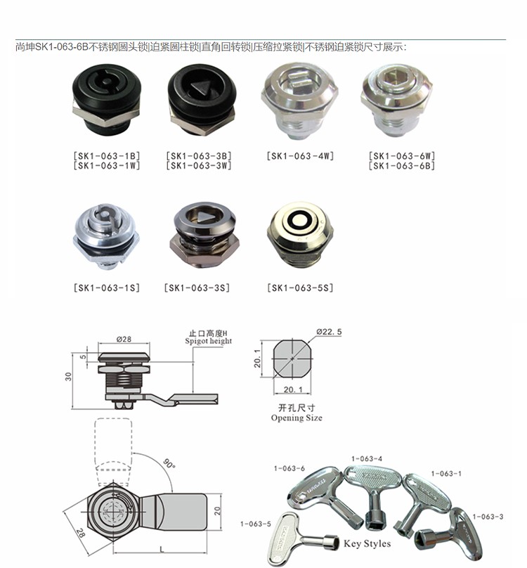尚坤SK1-063-6B锌合金圆头锁迫紧圆柱锁直角回转锁压缩拉紧锁锌合金迫紧锁