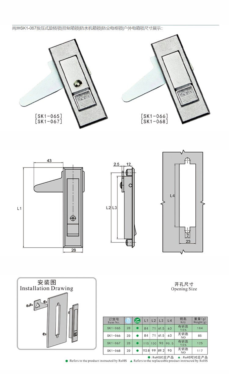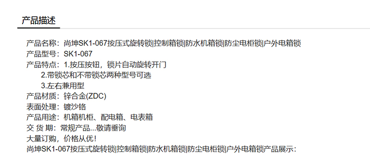 尚坤SK1-067控制箱锁按压式旋转锁防尘电柜锁防水机箱锁户外电箱锁