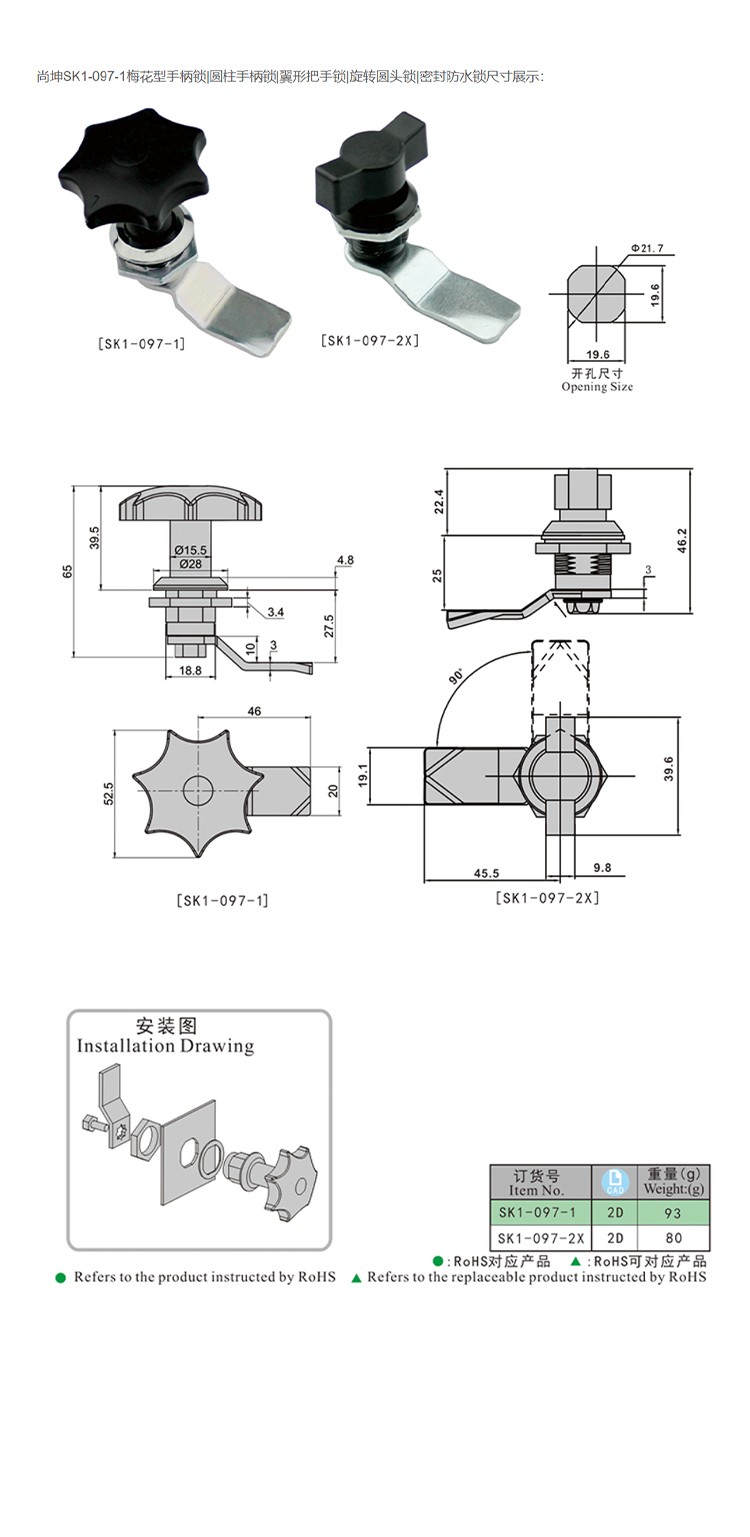 尚坤SK1-097-1梅花型手柄锁圆柱手柄锁翼形把手锁旋转圆头锁密封防水锁