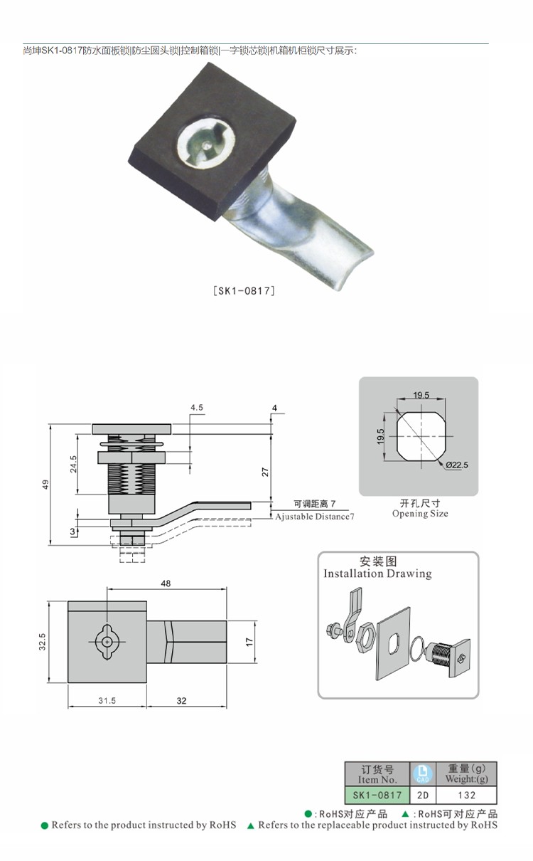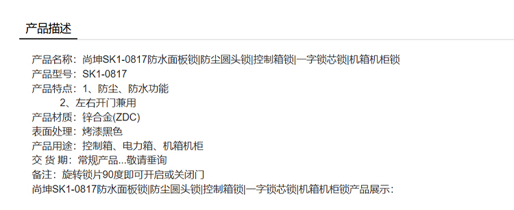 尚坤SK1-0817防水面板锁防尘圆头锁控制箱锁一字锁芯锁机箱机柜锁