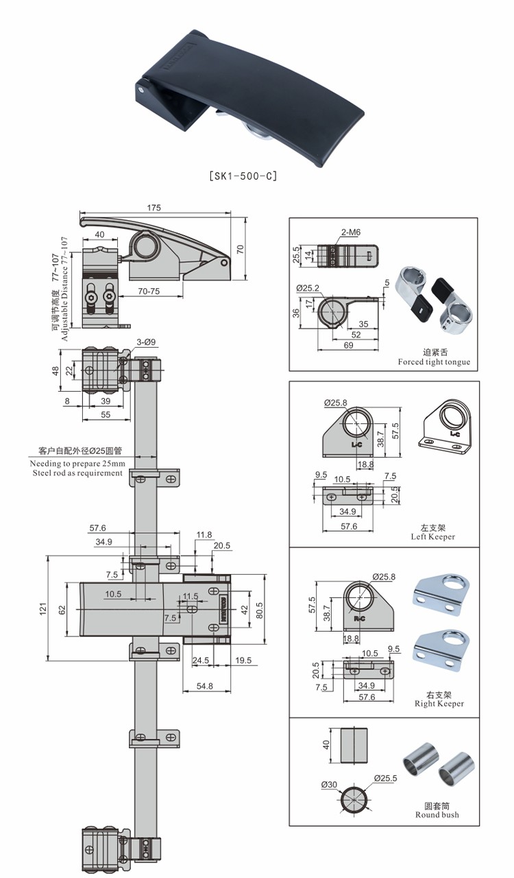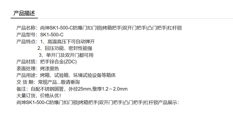 尚坤SK1-500-C防爆门扣门锁烤箱把手双开门把手凸门把手杠杆锁
