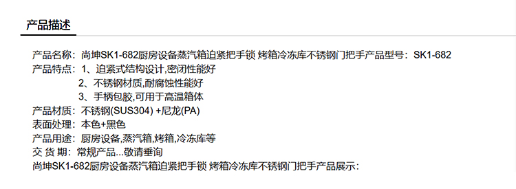尚坤SK1-682厨房设备蒸汽箱迫紧把手锁 烤箱冷冻库不锈钢门把手