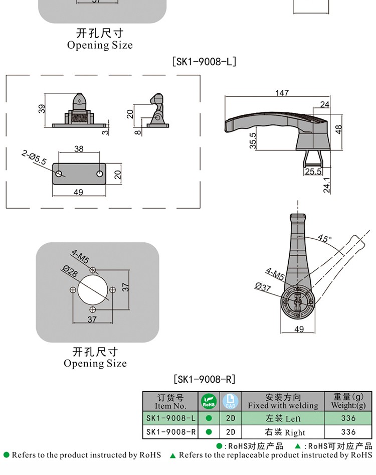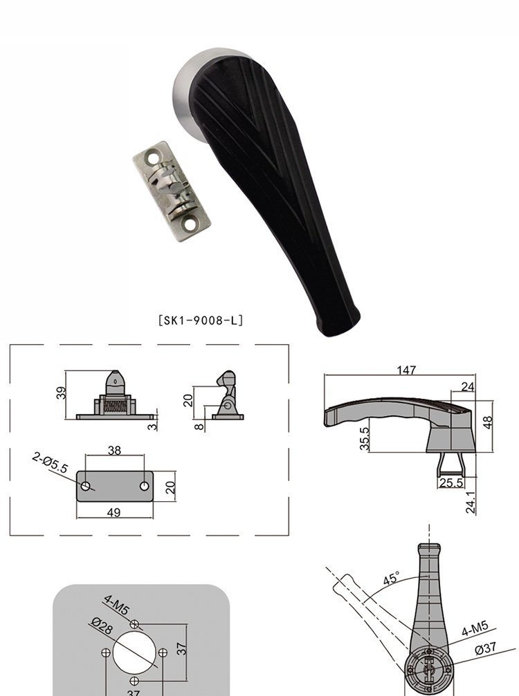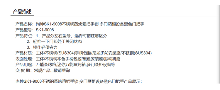 尚坤SK1-9008不锈钢蒸烤箱把手锁 多门蒸柜设备黑色门把手
