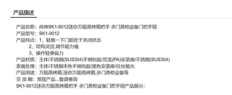 尚坤SK1-9012迷你万能蒸烤箱把手 多门蒸柜设备门把手锁