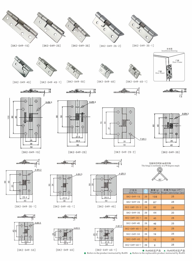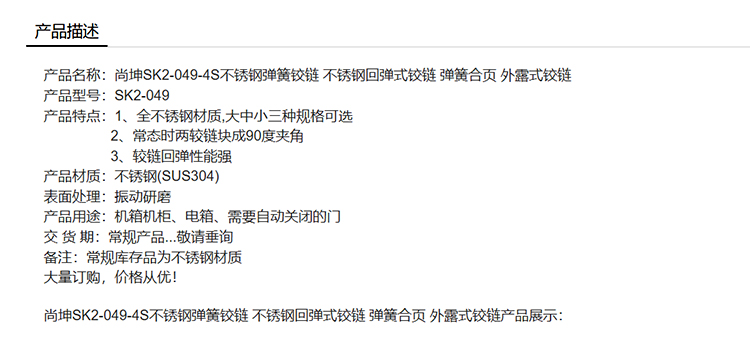 尚坤 SK2-049-4S不锈钢弹簧铰链 不锈钢回弹式铰链 弹簧合页 外露式铰链