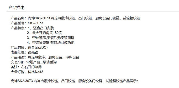 尚坤(KUNLONG)SK2-3073 冷库铰链、凸门铰链、冷库门铰链、试验箱铰链