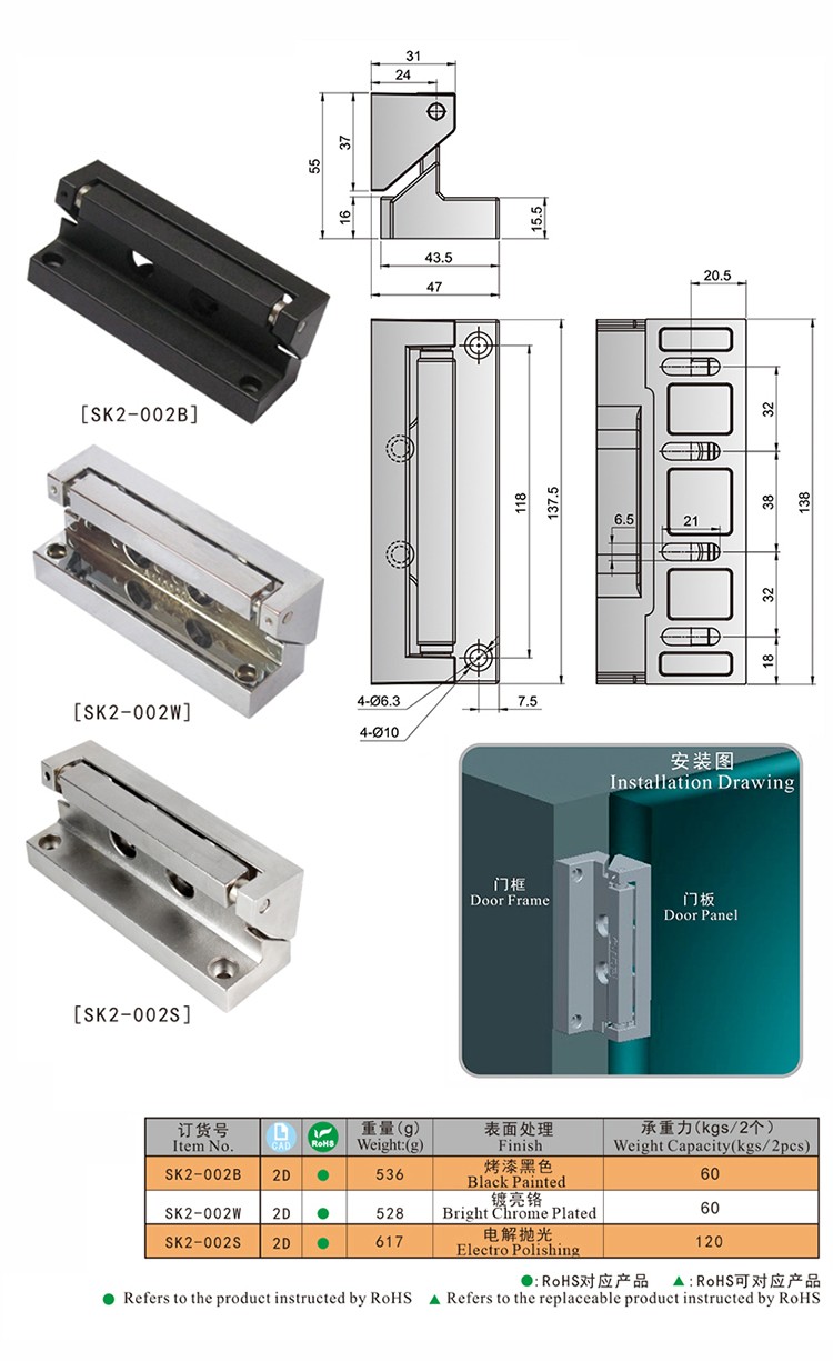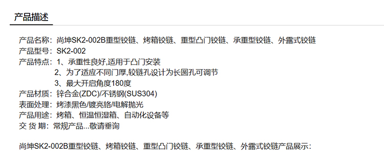 尚坤SK2-002B重型铰链、烤箱铰链、重型凸门铰链、承重型铰链、外露式铰链