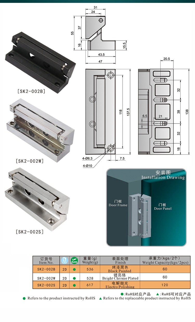 尚坤SK2-002W重型铰链、烤箱铰链、重型凸门铰链、承重型铰链、外露式铰链