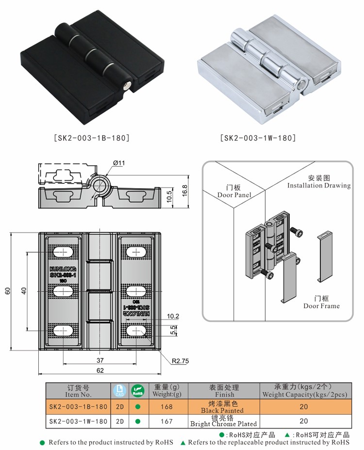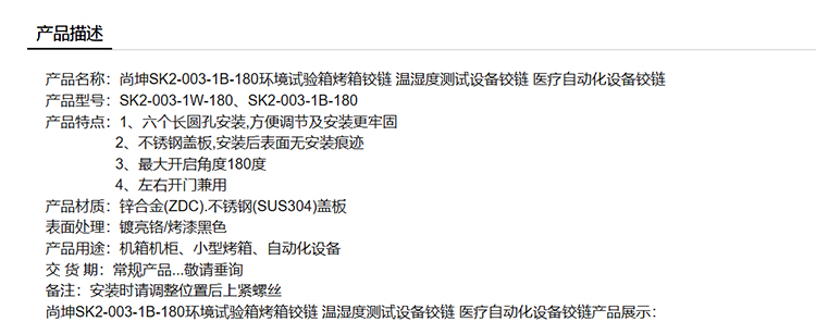 尚坤SK2-003-1S环境试验箱铰链、外露式铰链、承重型铰链、温湿度测试设备铰链、医疗设备铰链