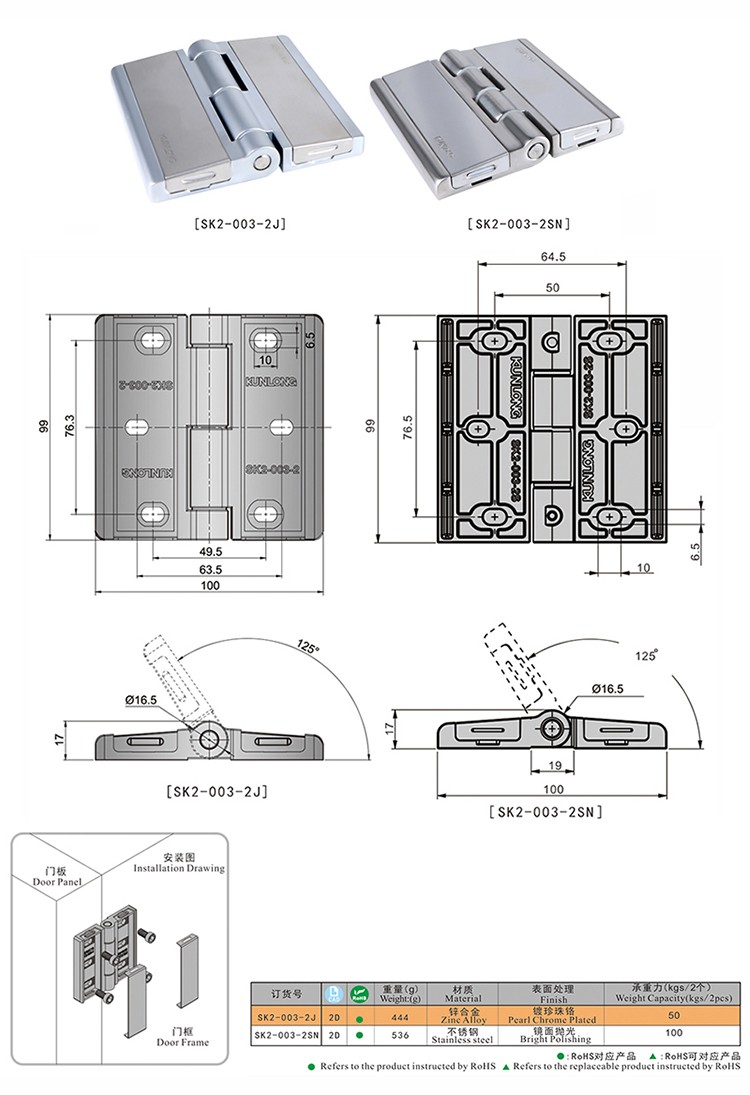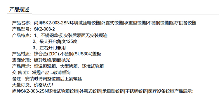 尚坤SK2-003-2SN环境试验箱铰链外露式铰链承重型铰链不锈钢铰链医疗设备铰链