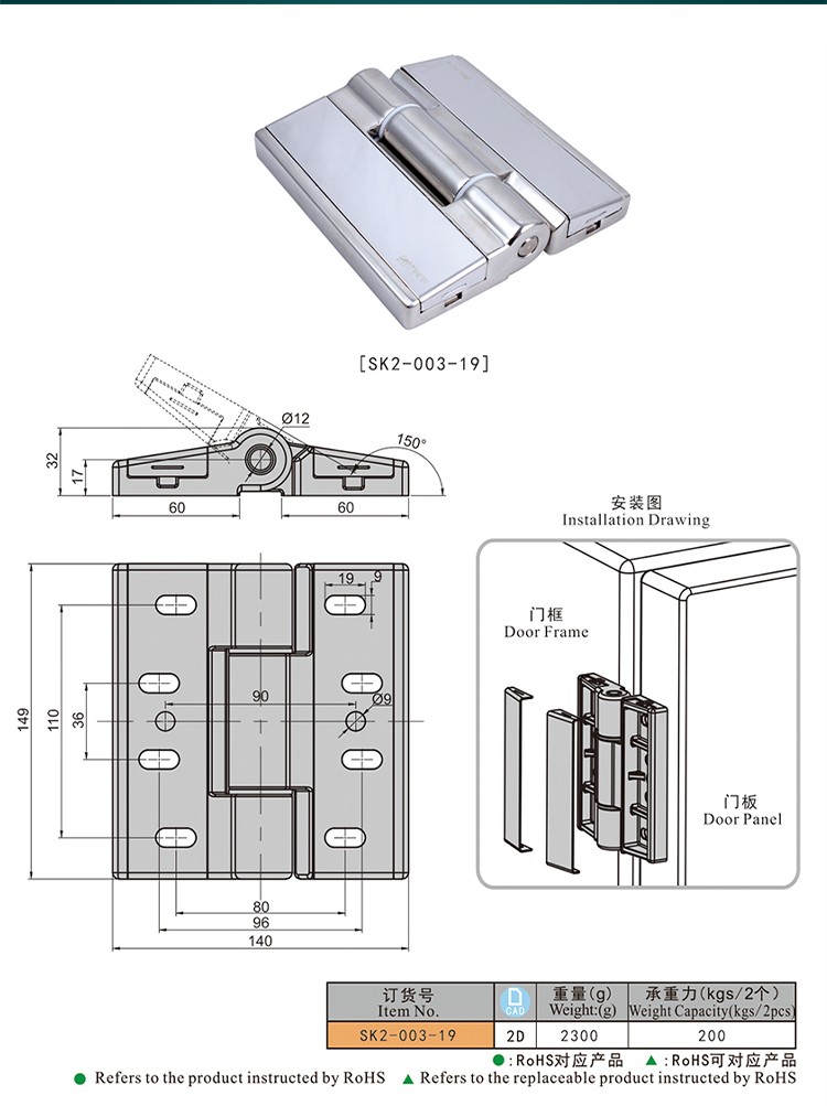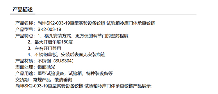 尚坤SK2-003-19重型实验设备铰链 试验箱冷库门体承重铰链