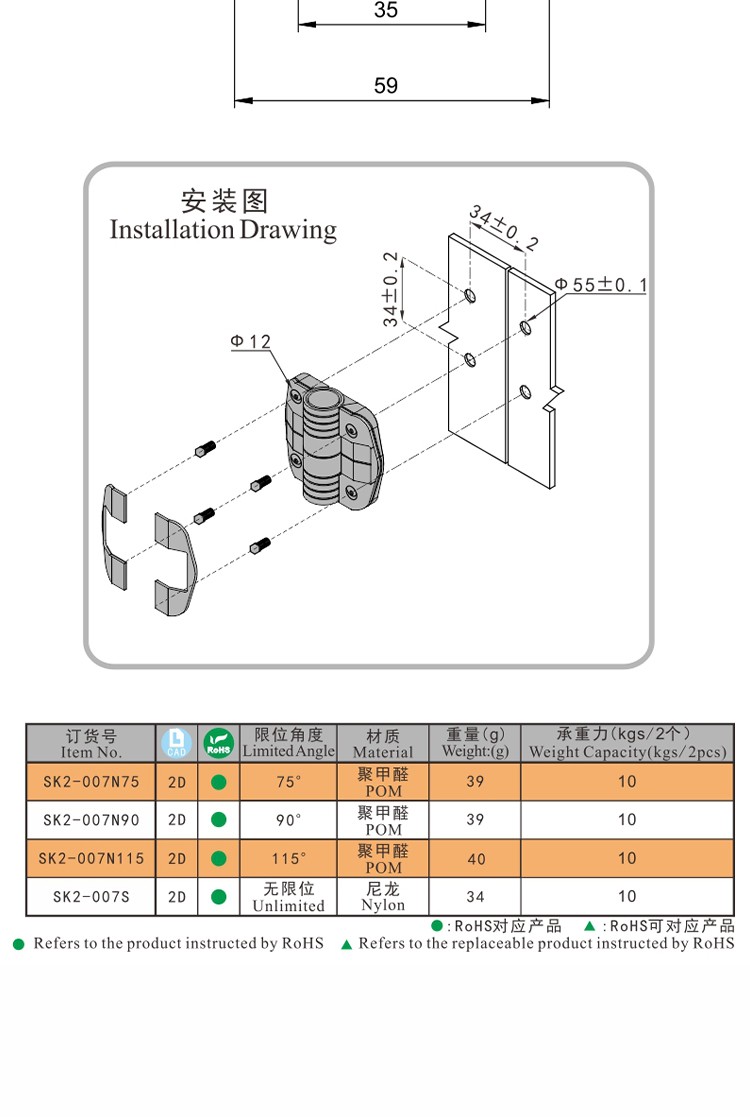 尚坤SK2-007外露式铰链、电柜电箱铰链、机柜铰链、控制箱铰链、平面铰链