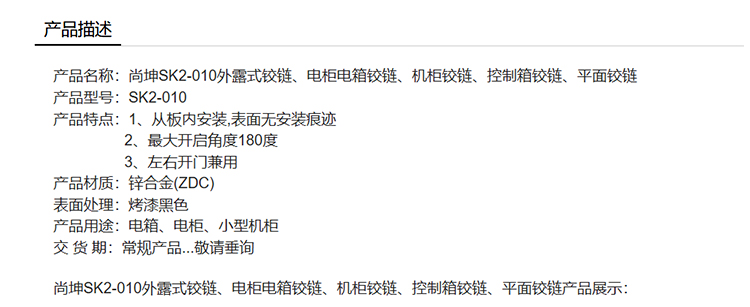 尚坤SK2-010外露式铰链、电柜电箱铰链、机柜铰链、控制箱铰链、平面铰链
