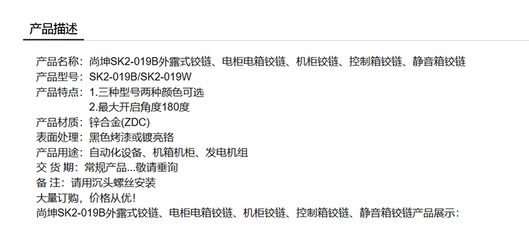 尚坤SK2-019B外露式铰链、电柜电箱铰链、机柜铰链、控制箱铰链、静音箱铰链