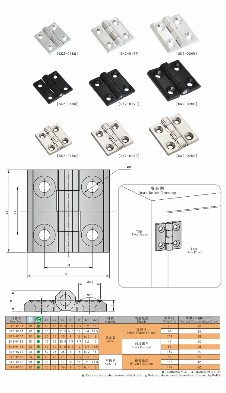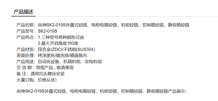 尚坤SK2-019S不锈钢外露式铰链、电柜电箱铰链、机柜铰链、控制箱铰链、静音箱铰链