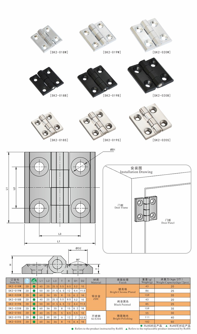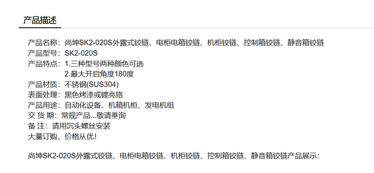 尚坤SK2-020S外露式铰链、电柜电箱铰链、机柜铰链、控制箱铰链、静音箱铰链