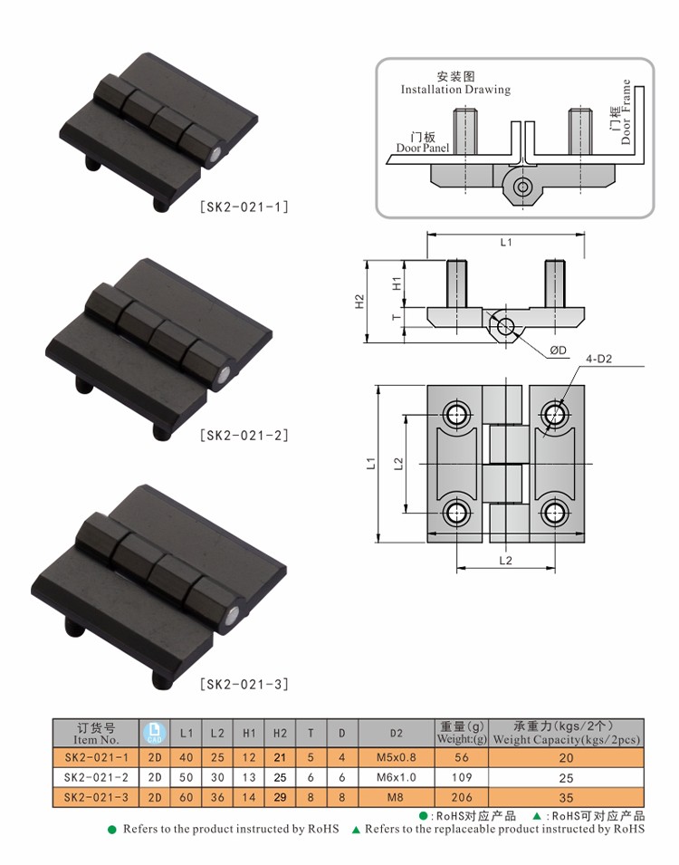 尚坤SK2-021-1外露式铰链、电柜电箱铰链、机柜铰链、控制箱铰链、静音箱铰链