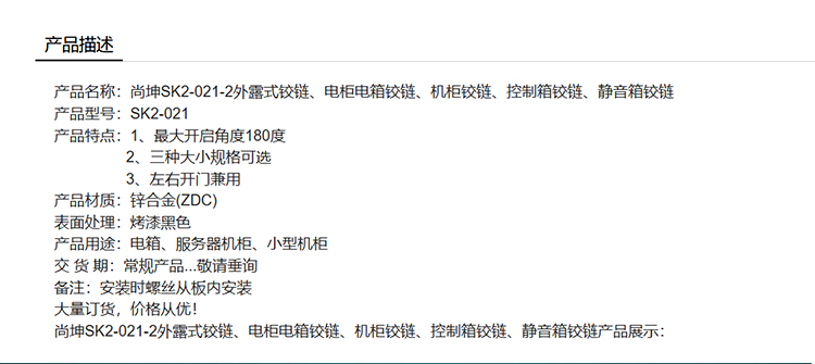 尚坤SK2-021-2外露式铰链、电柜电箱铰链、机柜铰链、控制箱铰链、静音箱铰链