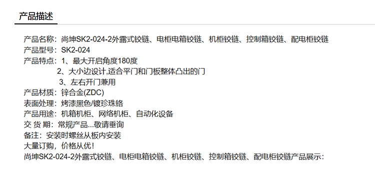 尚坤SK2-024-2外露式铰链、电柜电箱铰链、机柜铰链、控制箱铰链、配电柜铰链