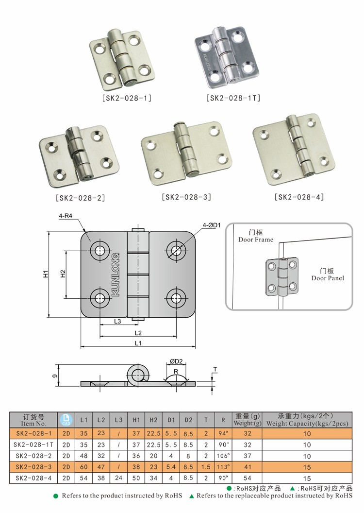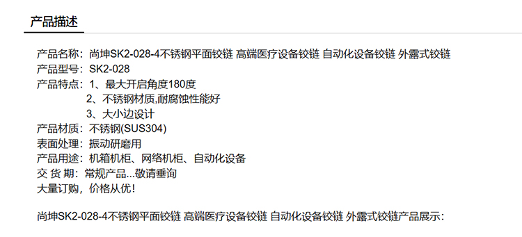 尚坤SK2-028-4不锈钢平面铰链 高端医疗设备铰链 自动化设备铰链 外露式铰链