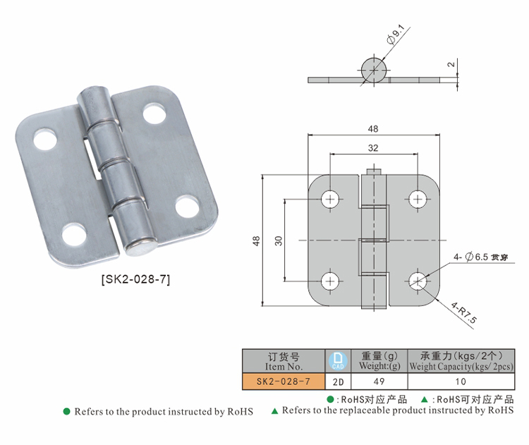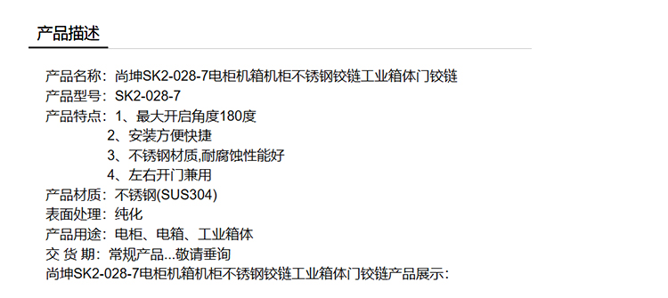 尚坤SK2-028-7电柜机箱机柜不锈钢铰链工业箱体自动化设备门铰链