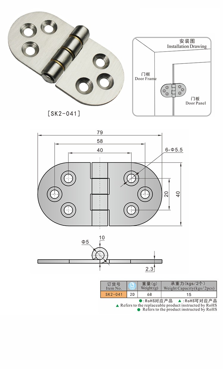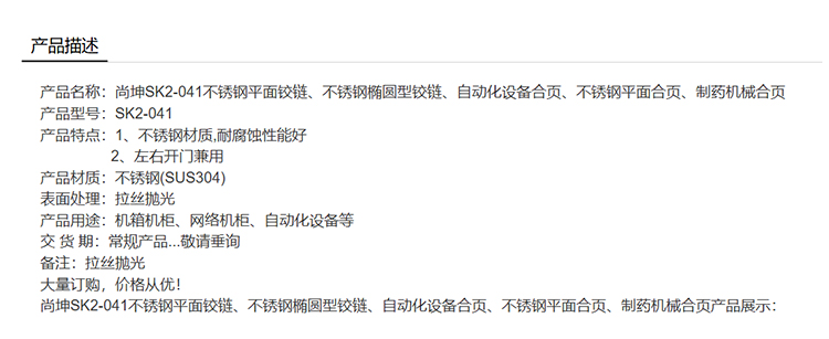 尚坤SK2-041不锈钢平面铰链、不锈钢椭圆型铰链、自动化设备合页、不锈钢平面合页、制药机械合页