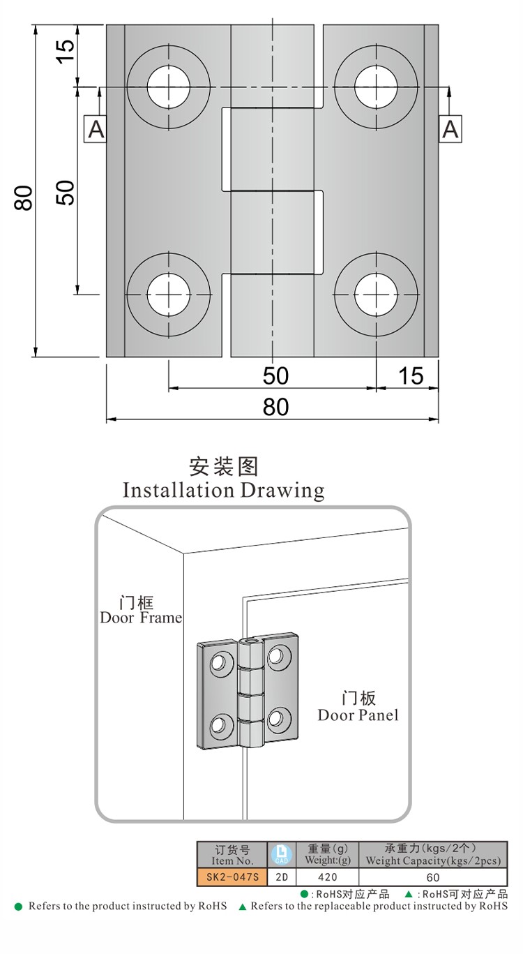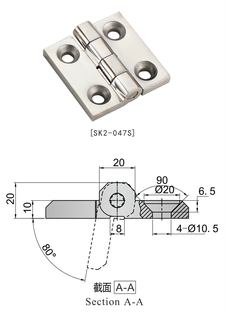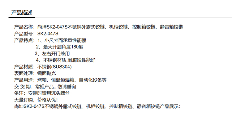 尚坤SK2-047S不锈钢外露式铰链、机柜铰链、控制箱铰链、静音箱铰链