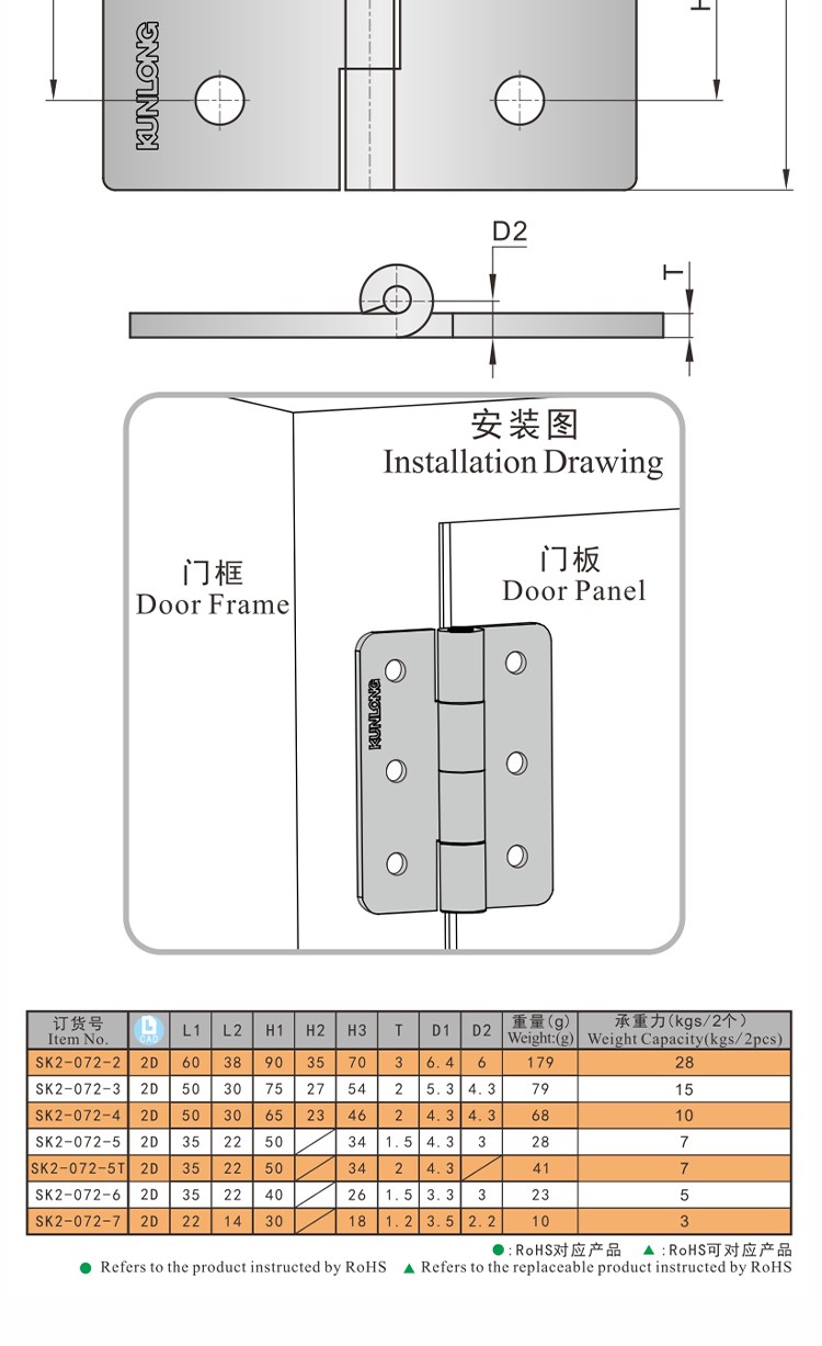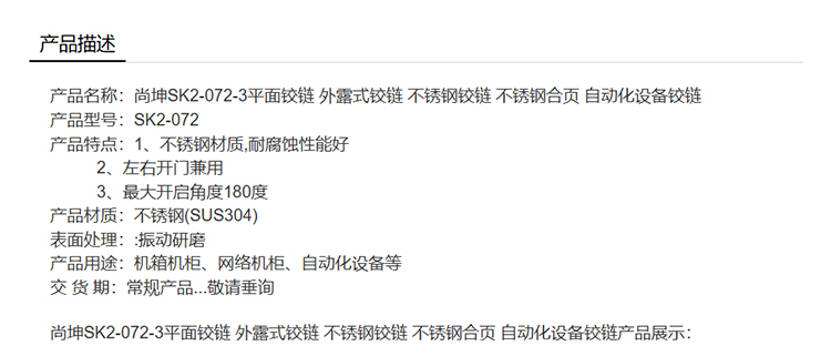 尚坤SK2-072-3平面铰链 外露式铰链 不锈钢铰链 不锈钢合页 自动化设备铰链