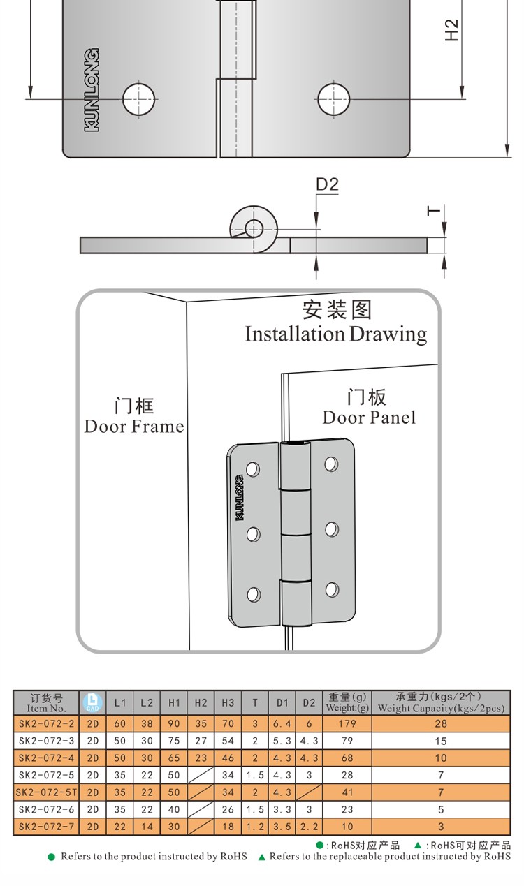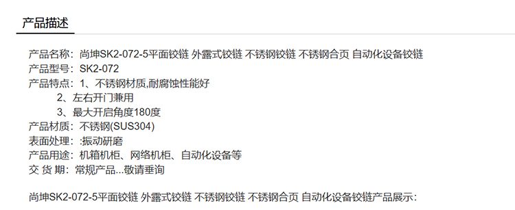 尚坤SK2-072-5平面铰链 外露式铰链 不锈钢铰链 不锈钢合页 自动化设备铰链