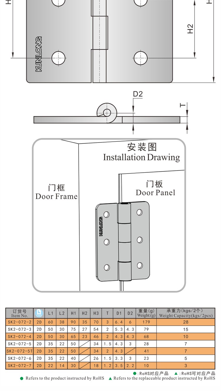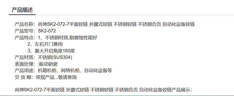 尚坤SK2-072-7平面铰链 外露式铰链 不锈钢铰链 不锈钢合页 自动化设备铰链