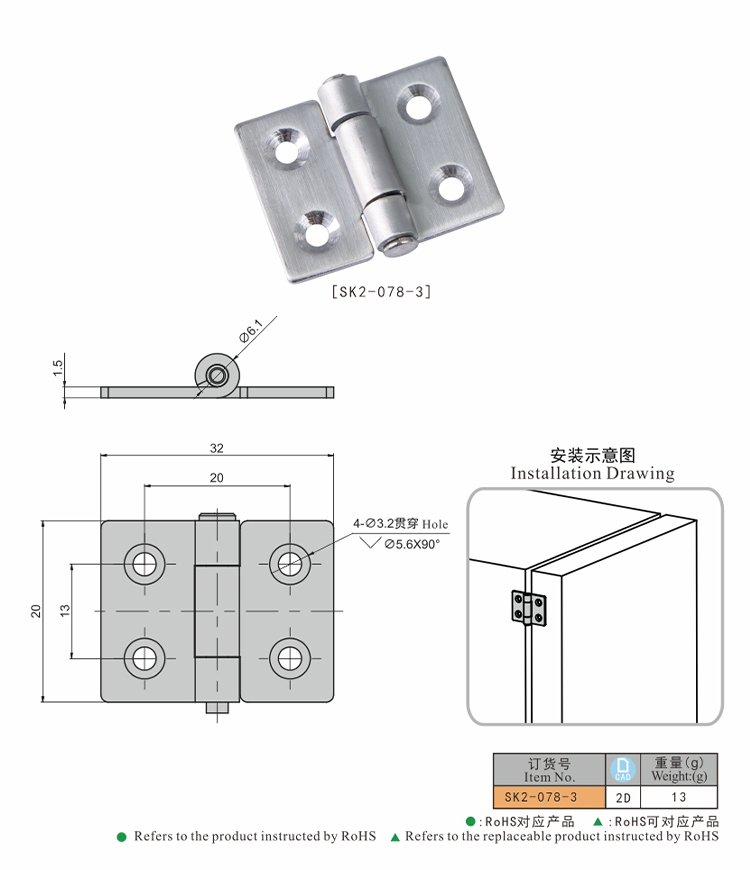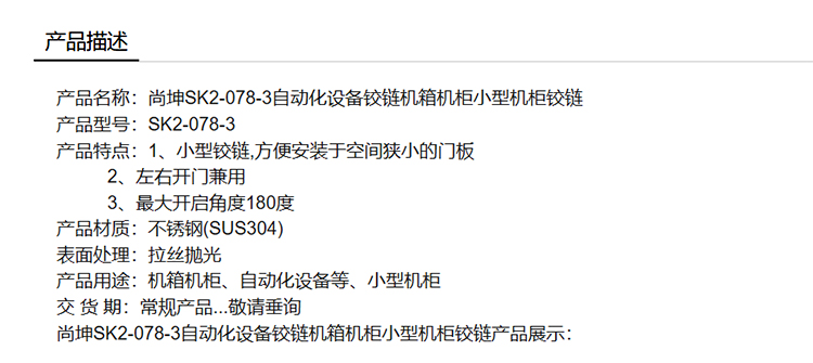 尚坤SK2-078-3自动化设备铰链机箱机柜小型机柜铰链