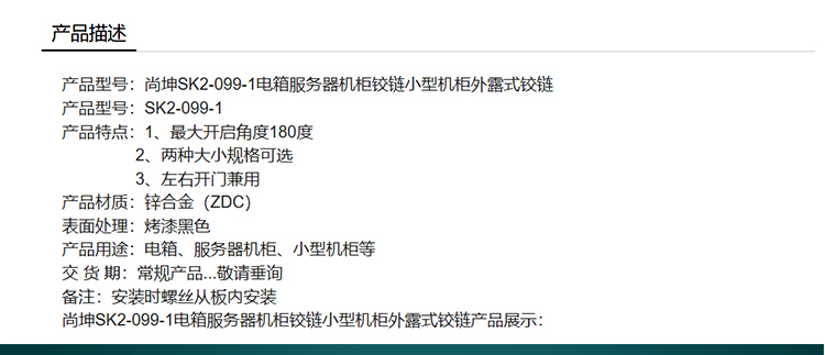 尚坤SK2-099-1电箱服务器机柜铰链小型机柜外露式铰链