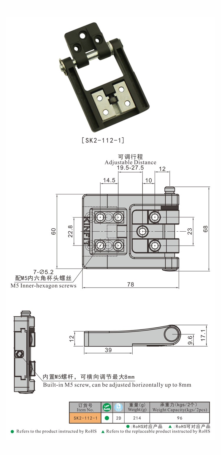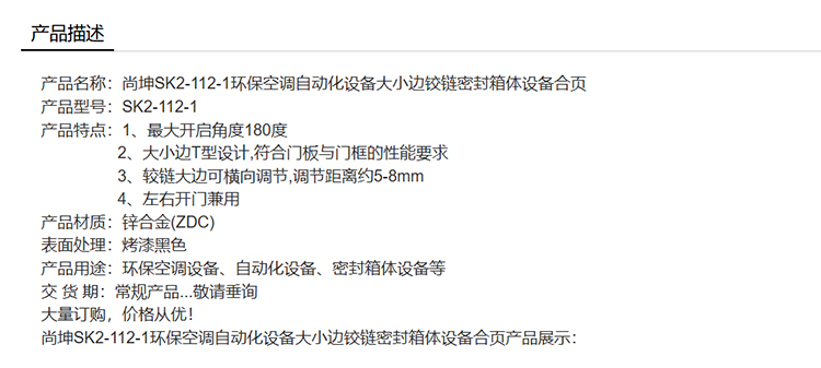尚坤SK2-112-1环保空调自动化设备大小边铰链密封箱体设备合页