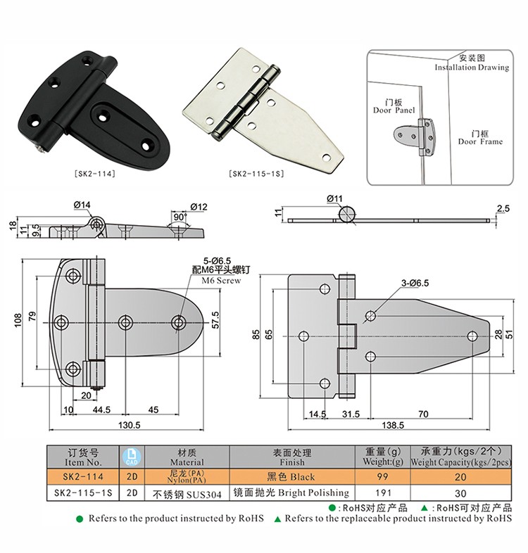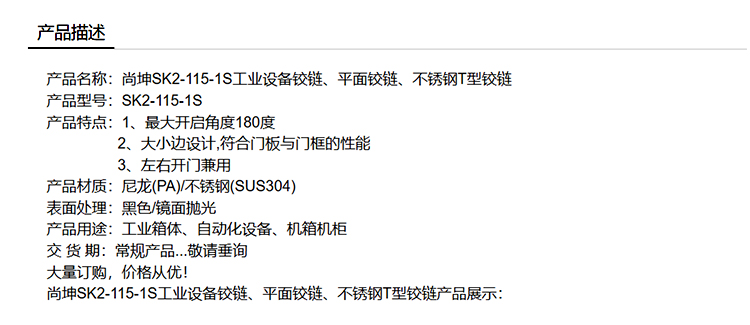 尚坤SK2-115-1S工业设备铰链、平面铰链、不锈钢T型铰链