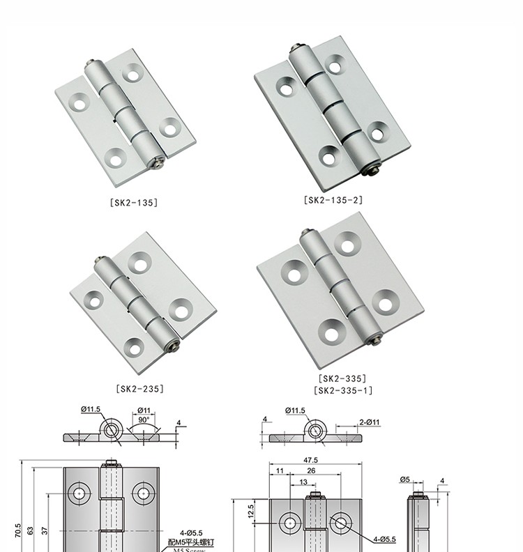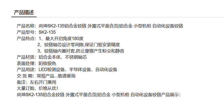 尚坤SK2-135铝合金铰链 外露式平面合页铝合金 小型机柜 自动化设备铰链
