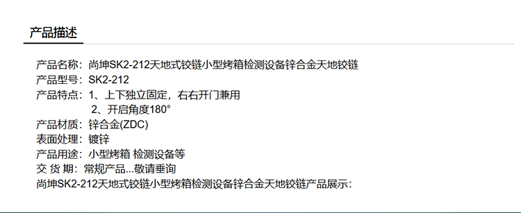 尚坤SK2-212天地式铰链小型烤箱检测设备锌合金天地铰链