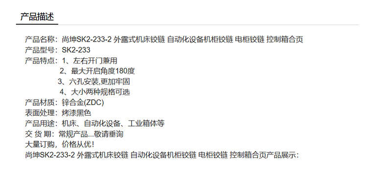尚坤SK2-233-2 外露式机床铰链 自动化设备机柜铰链 电柜铰链 控制箱合页