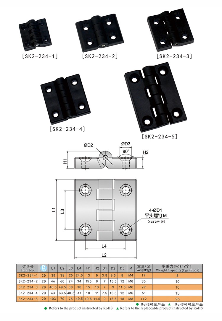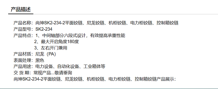 尚坤SK2-234-2平面铰链、尼龙铰链、机柜铰链、电力柜铰链、控制箱铰链