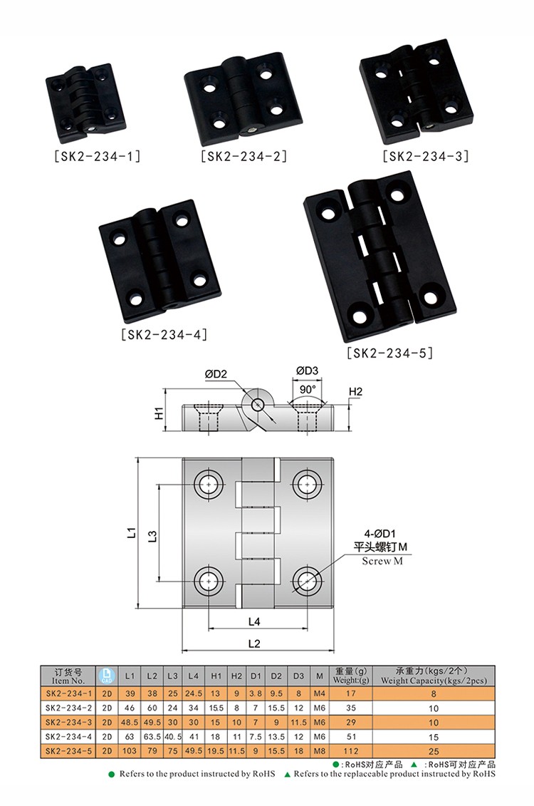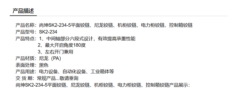 尚坤SK2-234-5平面铰链、尼龙铰链、机柜铰链、电力柜铰链、控制箱铰链