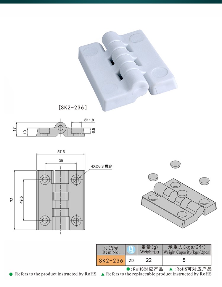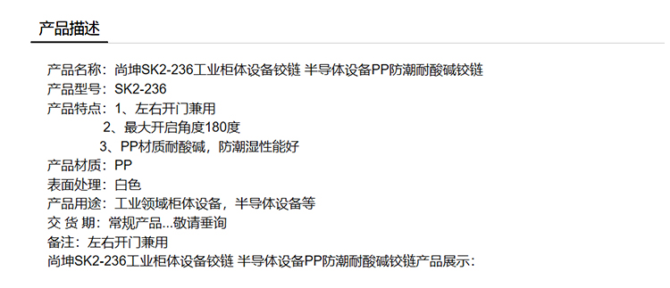 尚坤SK2-236工业柜体设备铰链 半导体设备PP防潮耐酸碱铰链