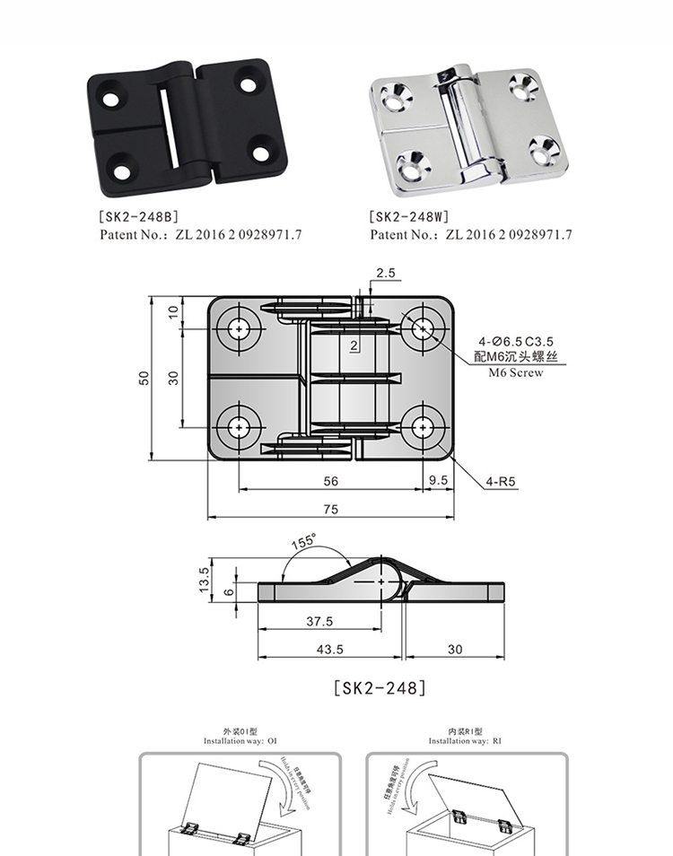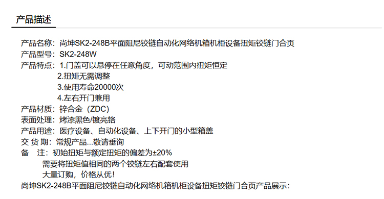 尚坤SK2-248B平面阻尼铰链自动化网络机箱机柜设备扭矩铰链门合页