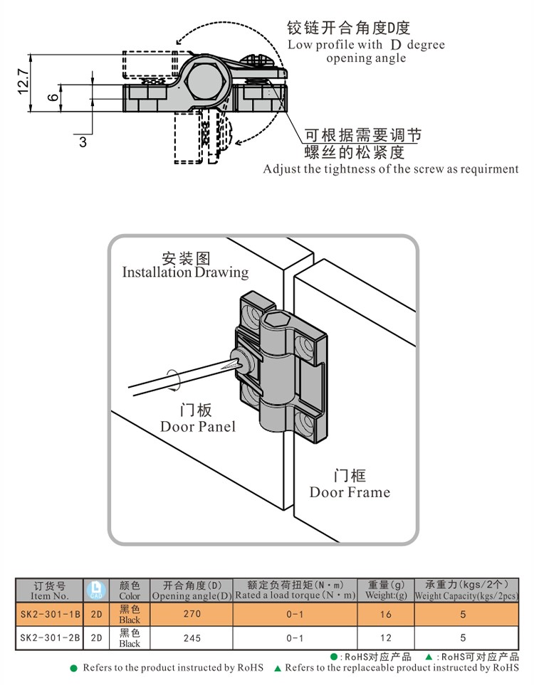 尚坤SK2-301-1B阻尼铰链限位铰链平面扭矩铰链调节式阻力铰链